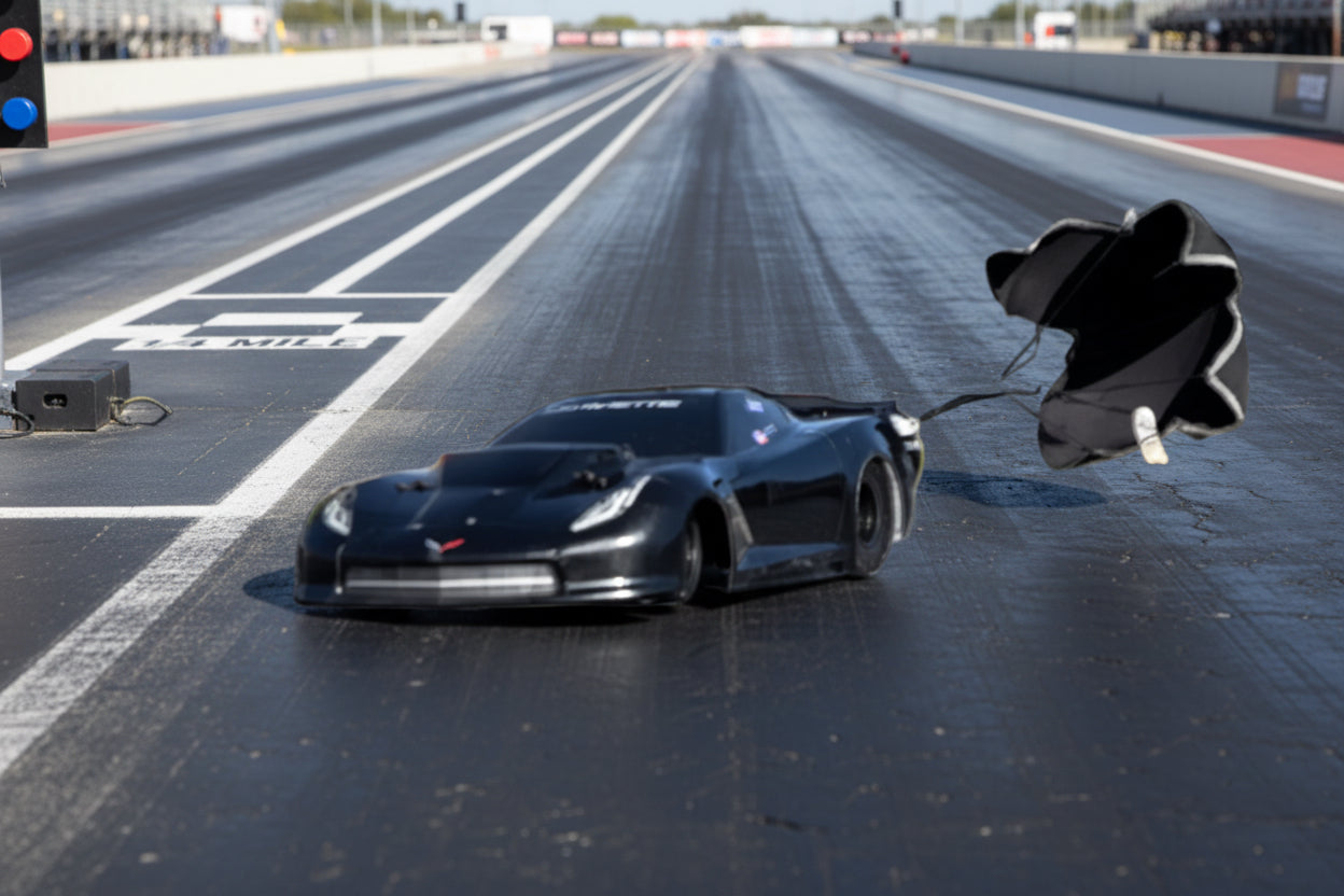 Take your RC drag build to the next level with this fully functional parachute system — designed for serious speed runs and no-prep drag racing.
